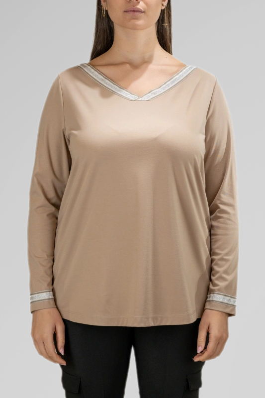 T-shirt Amélia–t-shirt femme col V en viscose avec lurex